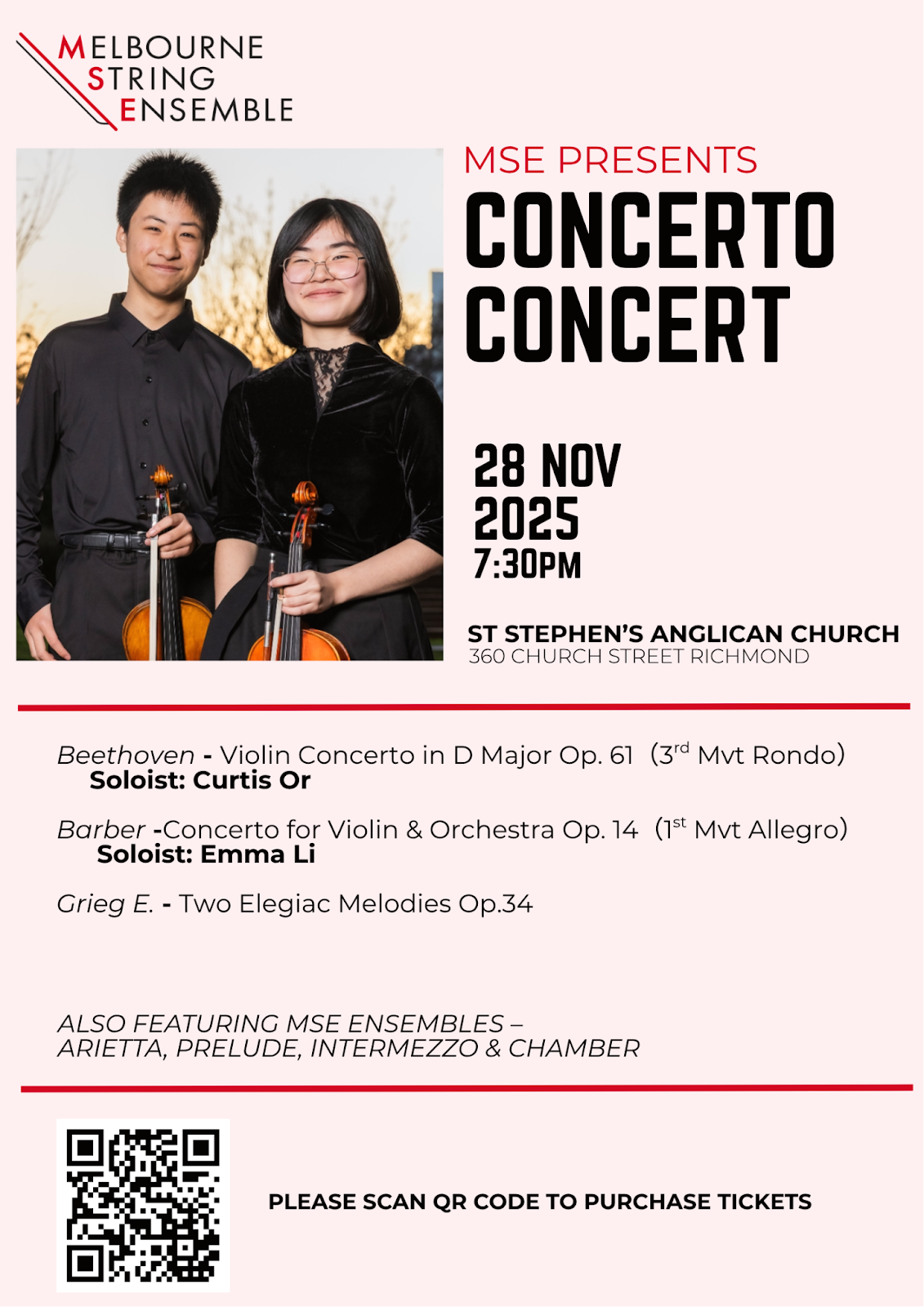Melbourne String Ensemble acknowledges the Wurundjeri, Woi-Wurrung people of the Kulin Nation, upon whose Country we are based and recognises their continuing connections to community, culture and country. We pay our respect to their Elders past and present and extend that respect to all Aboriginal and Torres Strait Islander peoples today.